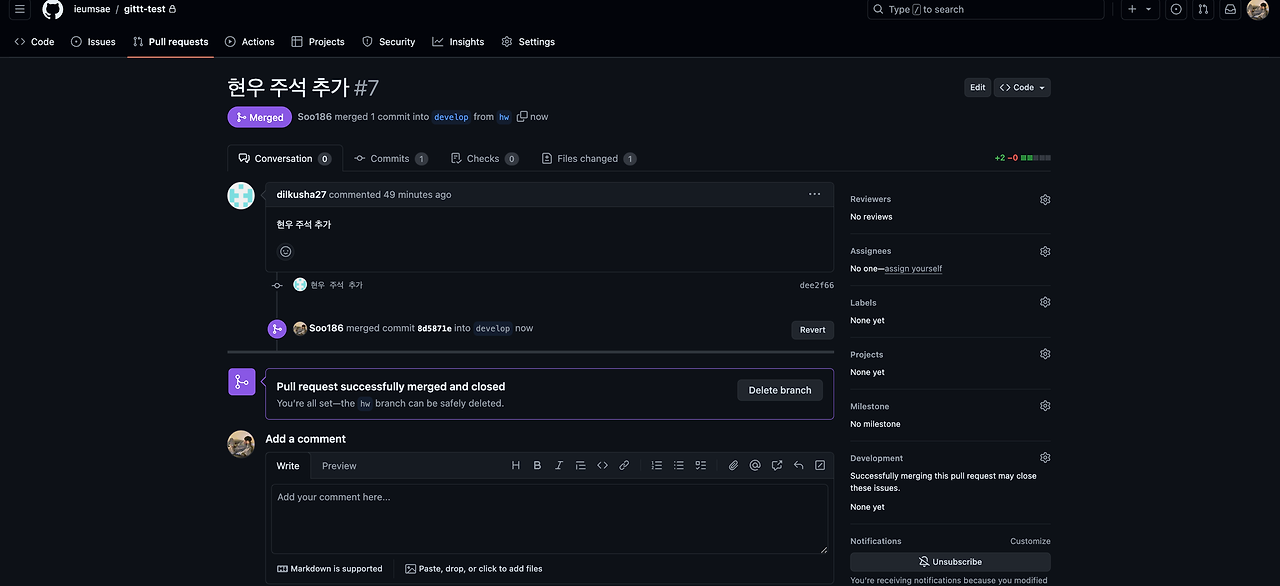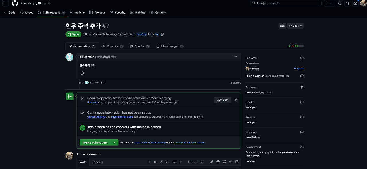 - GitHub에서 Pull Request 생성
