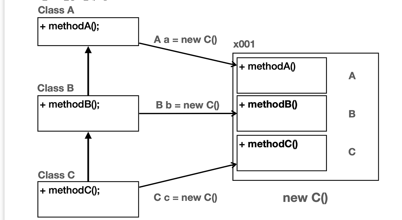 - 이 객체는 A(가족), B(부모님), C(자녀) 클래스의 모든 메서드를 포함: