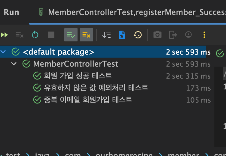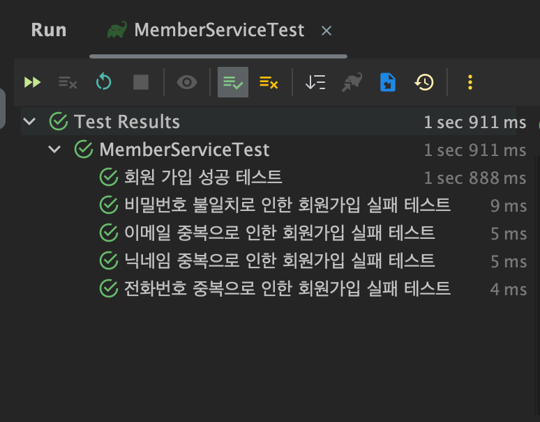 각 테스트는 Given-When-Then 구조를 따르며, 회원가입 API가 의도한 대로 동작하는지 확인하는 역할을 한다.