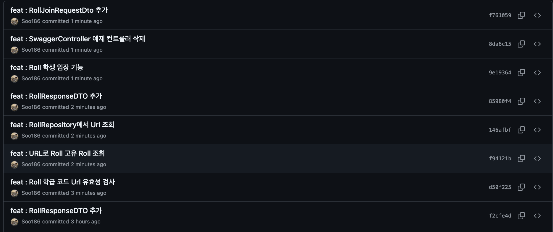 - 학생이 Roll에 입장할 수 있는 기능 구현 완료