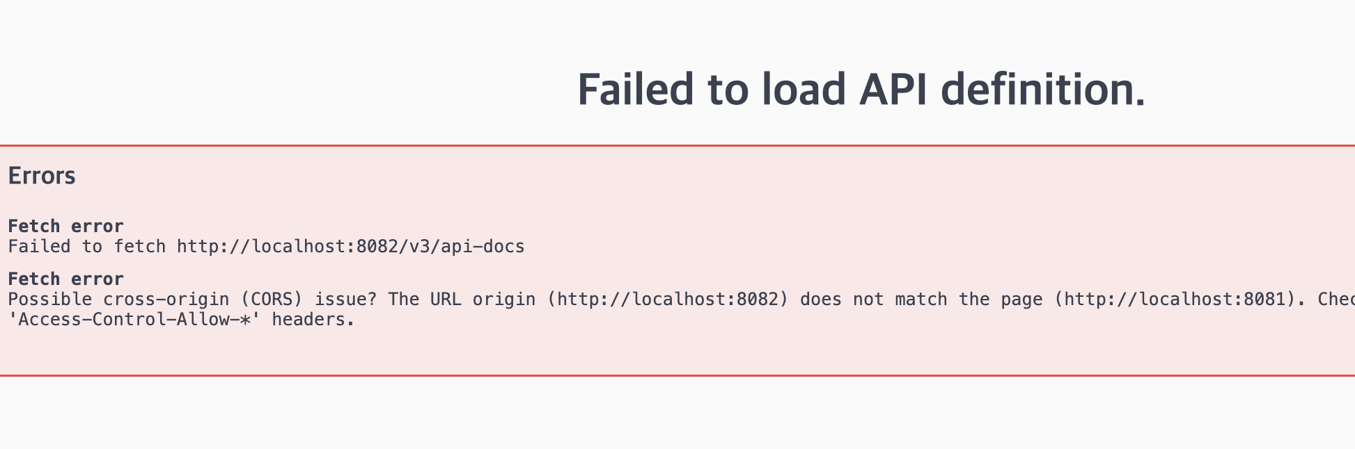 Swagger UI에서 백엔드 API 문서를 불러올 때 CORS(Cross-Origin Resource Sharing) 문제가 발생했다.