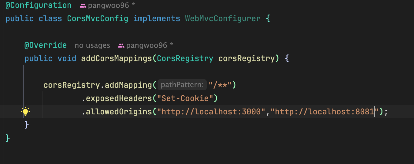 - CORS 설정 수정: 백엔드 서버의 CORS 설정을 수정하여 모든 출처(*)에서 접근을 허용하였습니다. 이를 위해 SecurityConfig와 CorsMvcConfig에 관련 설정을 추가 및 수정하였고, 쿠키와 인증 헤더를 노출할 수 있도록 설정했다.