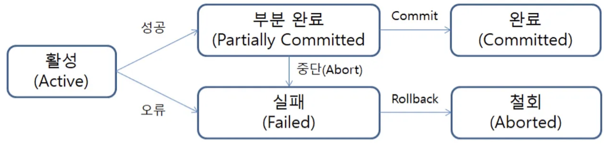 🔹 5. 철회(Aborted) " 실패 상태에서 롤백이 완료된 상태 트랜잭션 실행 전 상태로 복구됨 필요에 따라 사용자가 다시 트랜잭션을 시도할 수 있음